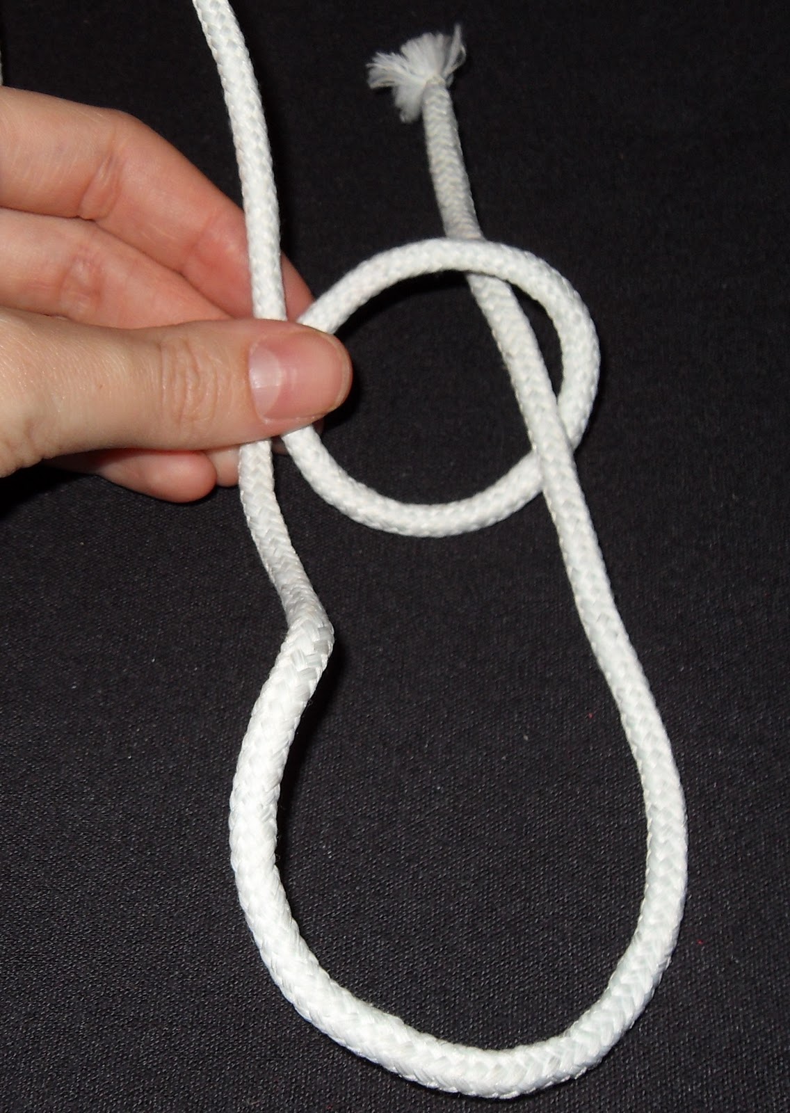 | Go around the top part of the rope, then back through the small loop, this time back to front. |