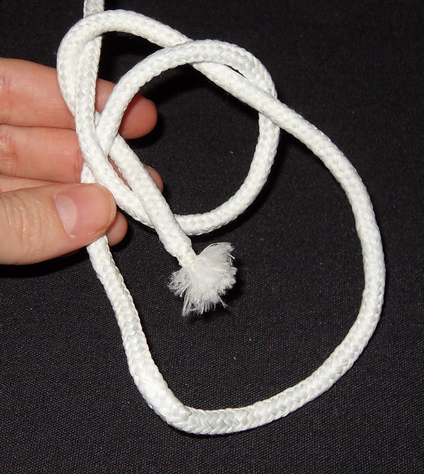 | Go around however many times you want, and end up with the beginning and end of the rope pointing opposite directions like this. |