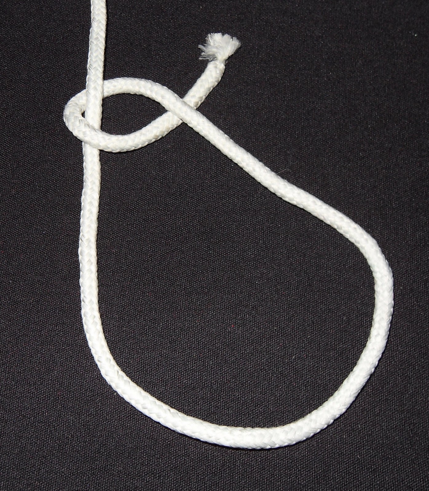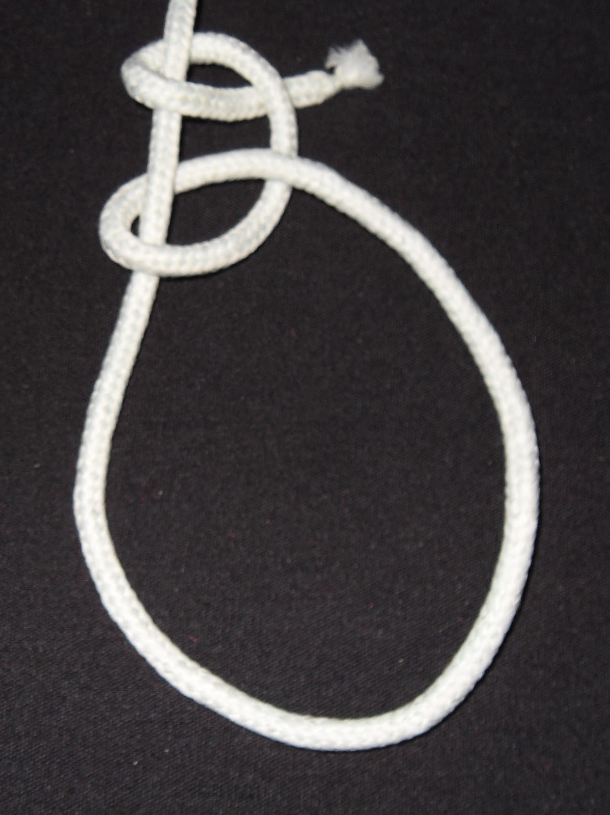 | Go around the top part of the rope, then back through the small loop, this time back to front. |